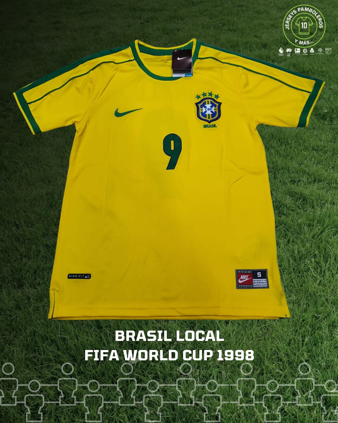 Brasil 1998 Tallas S-XXL Personaliza con tipografía oficial 🚚 Envíos a todo México. El costo y tiempo de entrega se calculan en el checkout.