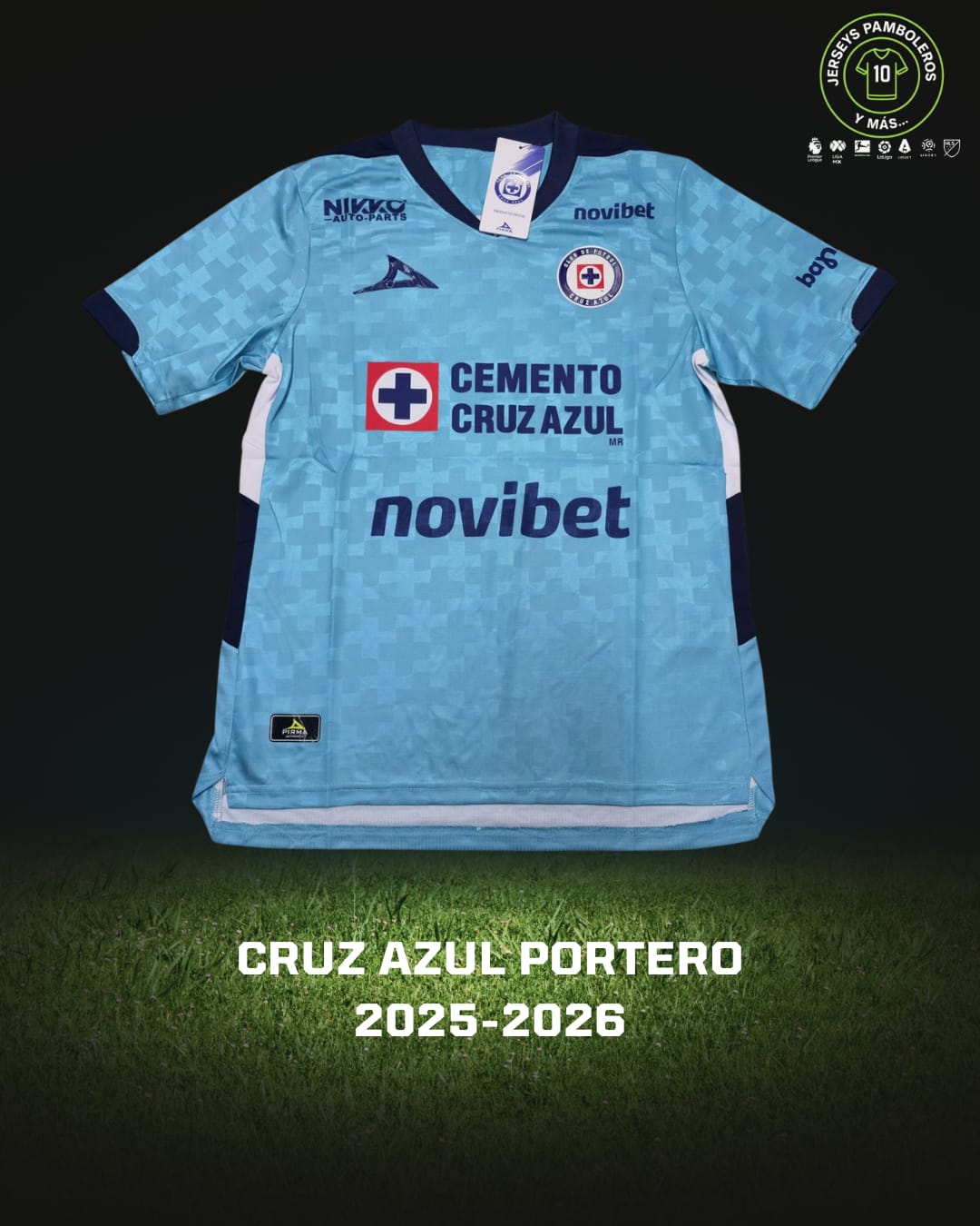 Cruz Azul Portero 25-26 Tallas S-XXL Versión jugador Personaliza con tipografía y parche oficial de la Liga MX. 🚚 Envíos a todo México. El costo y tiempo de entrega se calculan en el checkout.
