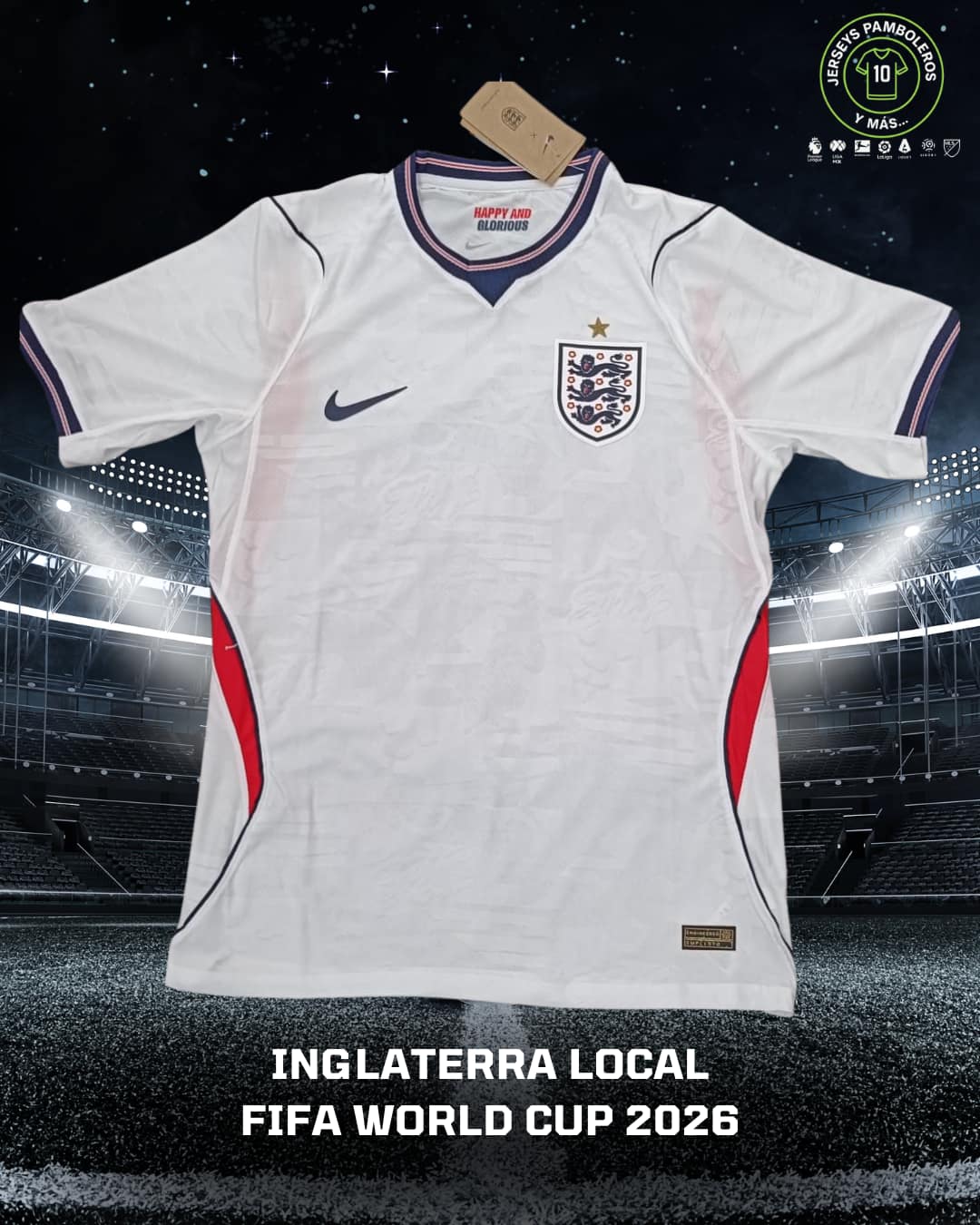 Inglaterra Mundial 2026 Tallas S-XXL Versión jugador Personaliza con tipografía oficial 🚚 Envíos a todo México. El costo y tiempo de entrega se calculan en el checkout.