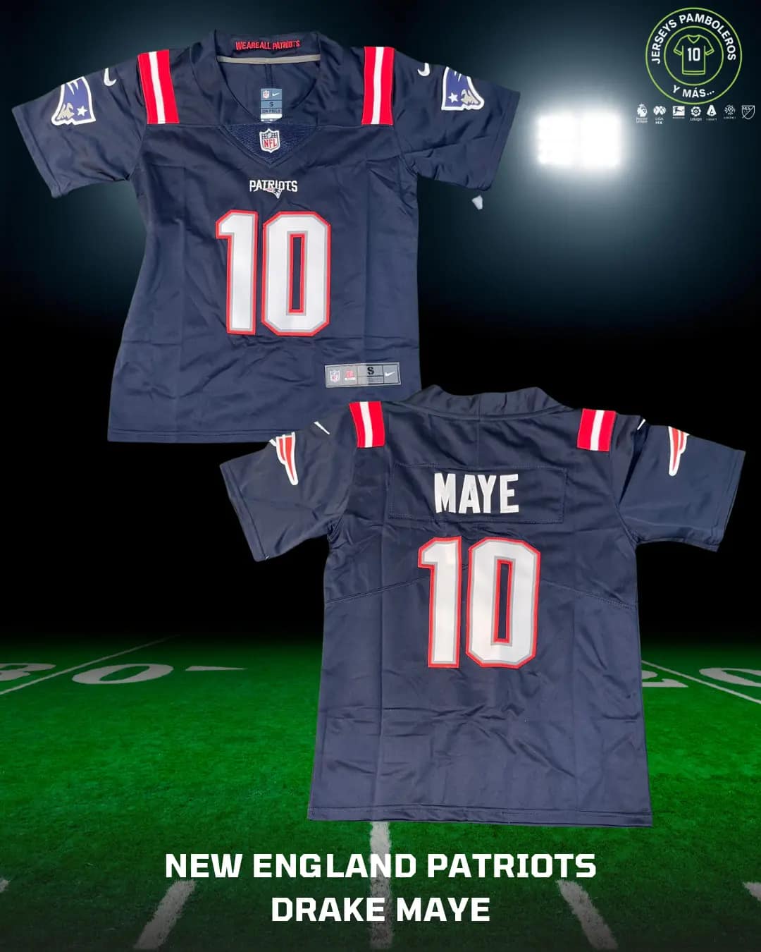 New England Patriots Drake Maye Tallas: S a XL 🚚 Envíos a todo México. El costo y tiempo de entrega se calculan en el checkout.
