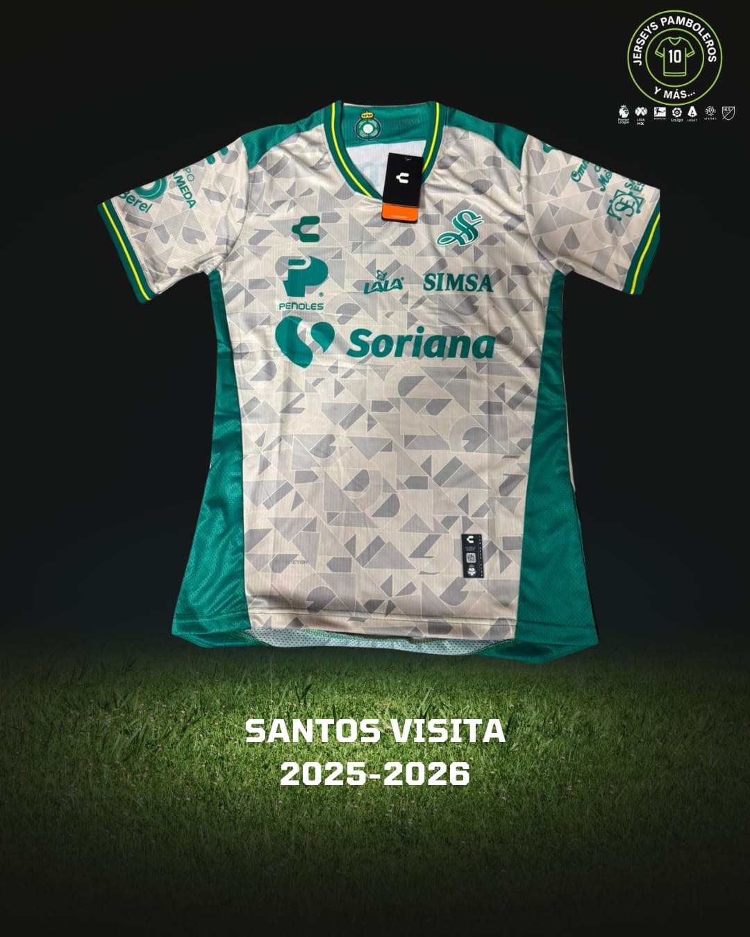 Santos Visita 25-26 Tallas S-XL Versión jugador Personaliza con tipografía y parche oficial de la Liga MX. 🚚 Envíos a todo México. El costo y tiempo de entrega se calculan en el checkout.