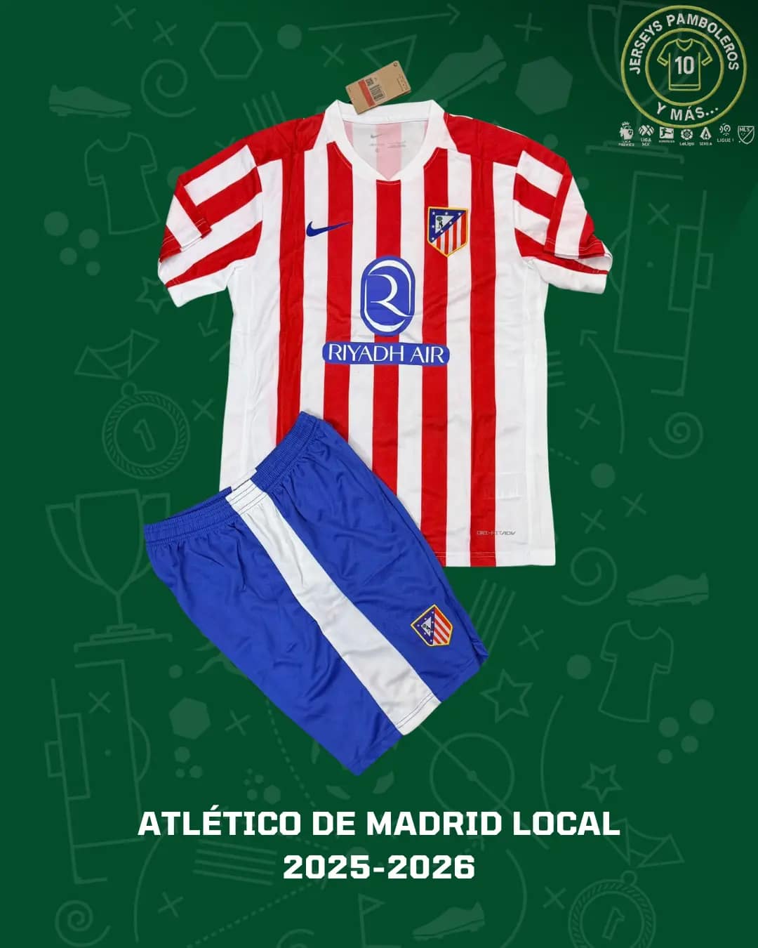 Atlético de Madrid 2025-26 niño (Incluye short y playera). Tallas 4-14. Personaliza con tipografía original. 🚚 Envíos a todo México. El costo y tiempo de entrega se calculan en el checkout.