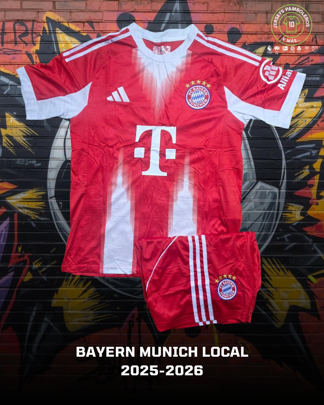 Bayern Múnich local 2025-26 Tallas S-XL Incluye short, medias y playera con nombre y número con tipografía original. 🚚 Envíos a todo México. El costo y tiempo de entrega se calculan en el checkout.