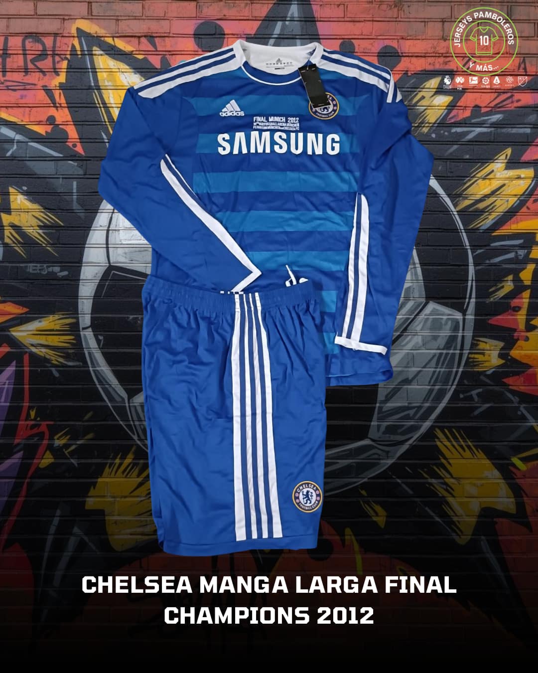 Chelsea retro 2012 Tallas S-XL Incluye short, medias y playera con nombre y número con tipografía original. 🚚 Envíos a todo México. El costo y tiempo de entrega se calculan en el checkout.