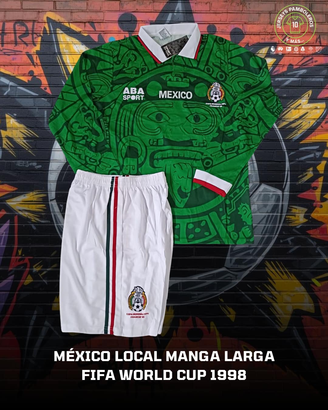 México retro 1998 Tallas S-XL Incluye short, medias y playera con nombre y número con tipografía original. 🚚 Envíos a todo México. El costo y tiempo de entrega se calculan en el checkout.