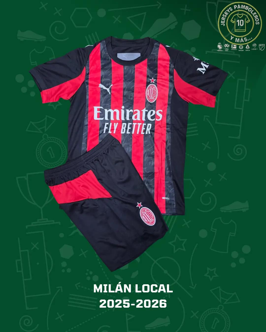 Milan 2025-26 niño (Incluye short y playera). Tallas 4-14. Personaliza con tipografía original. 🚚 Envíos a todo México. El costo y tiempo de entrega se calculan en el checkout.