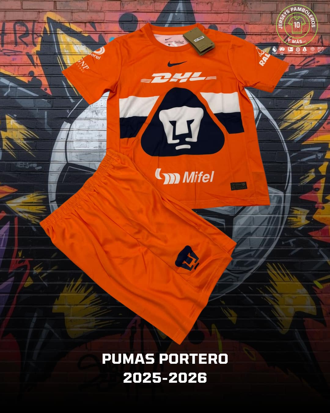 Pumas portero 2025-26 Tallas S-XL Incluye short, medias y playera con nombre y número con tipografía original. 🚚 Envíos a todo México. El costo y tiempo de entrega se calculan en el checkout.