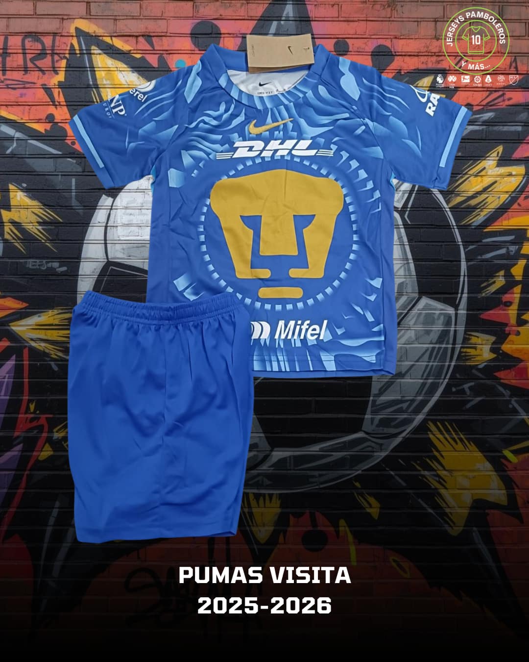 Pumas visita 2025-26 Tallas S-XL Incluye short, medias y playera con nombre y número con tipografía original. 🚚 Envíos a todo México. El costo y tiempo de entrega se calculan en el checkout.